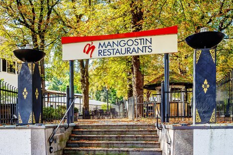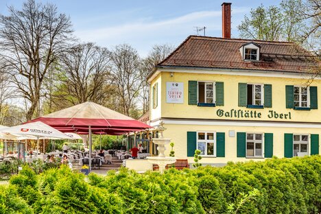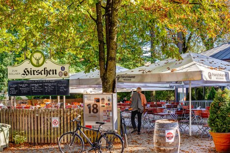 Mehrere Cafés, Restaurants und der besonders schöne Biergarten der Waldwirtschaft