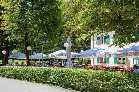 Einige Cafés und Restaurants, schöne Biergarten der "Aumeister"