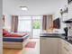 Apartmentküche, mit Fenster, Cerankochfeld, Dunstabzug, Kühlschrank mit Gefrierfach, Mikrowelle, komplett mit Geschirr und Küchenutensilien
